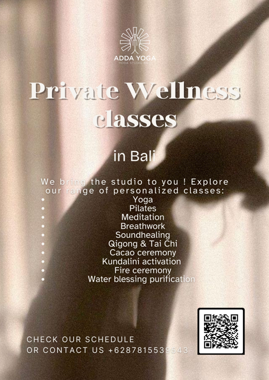 Elevate your practice with Private Yoga Kerobokan from ADDA YOGA Bali. Our certified yoga teacher (RYT)comes to your villa/hotel/residence for a 1:1 Vinyasa Flow or Restorative session. Many Yoga styles available !