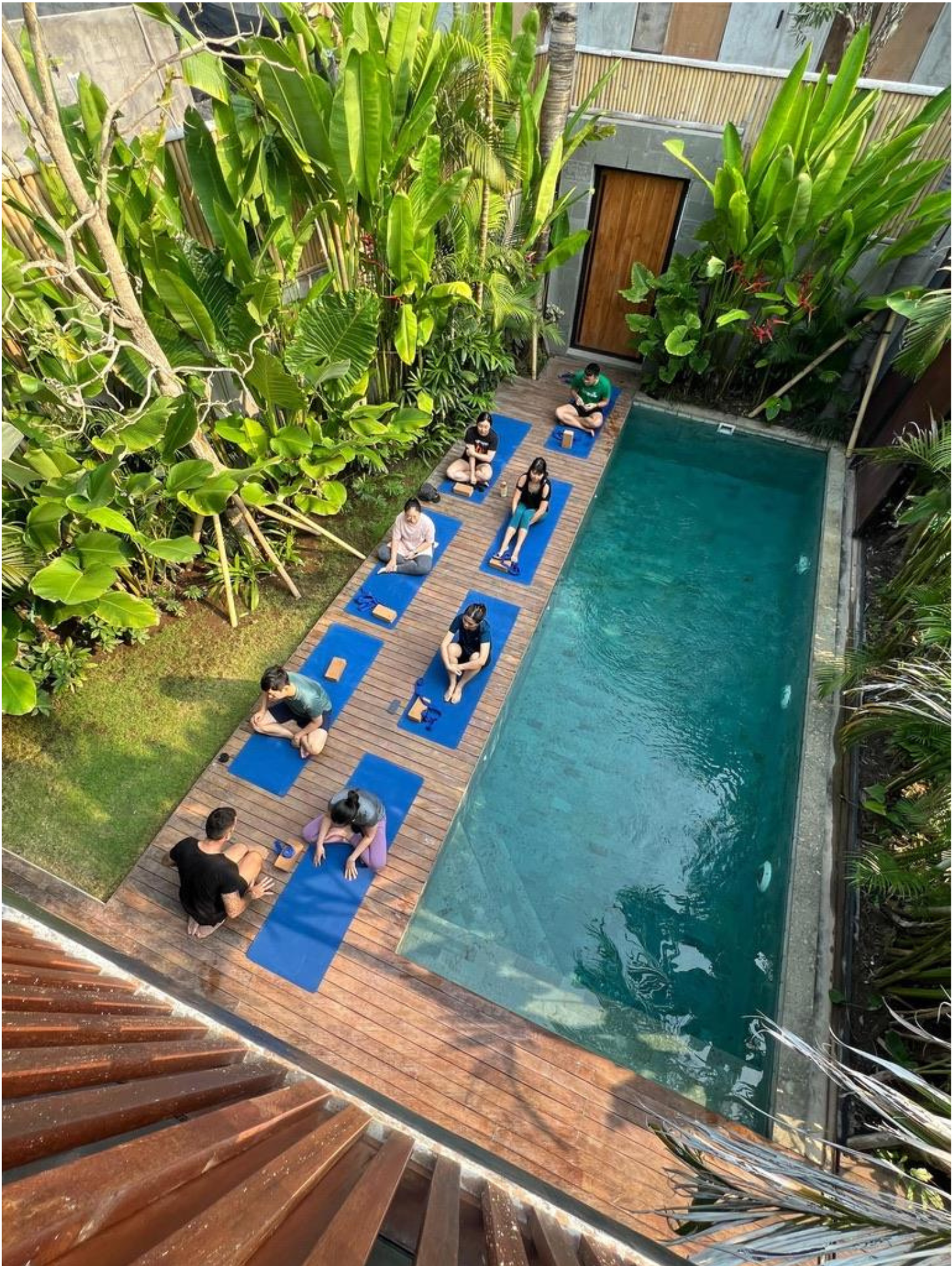Our Yoga workshop space for hire in Bali, Canggu, Seminyak is perfectly designed for a beautiful and studious session.